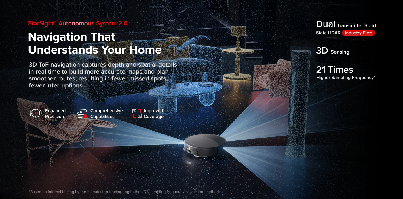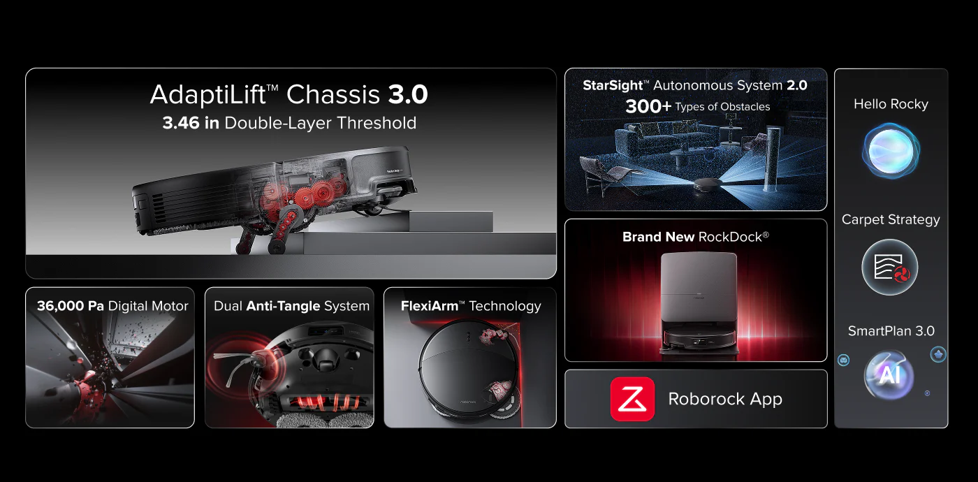 36,000Pa suction, 79.8mm slim height, excellent hair handling, strong edge work, impressive obstacle recognition, standout threshold climbing, a polished app, and a dock that removes most of the annoying maintenance.